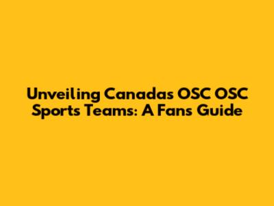 Unveiling Canada's OSC OSC Sports Teams: A Fan's Guide