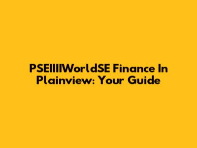 PSEIIIIWorldSE Finance In Plainview: Your Guide