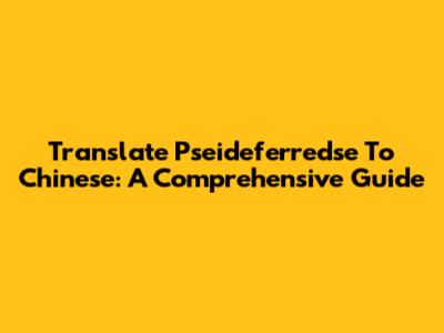 Translate Pseideferredse To Chinese: A Comprehensive Guide