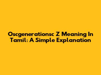 Oscgenerationsc Z Meaning In Tamil: A Simple Explanation