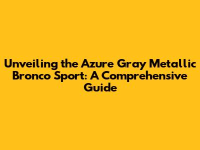 Hey guys, let's dive headfirst into the world of the Azure Gray Metallic Bronco Sport! This isn't just any color; it's a statement. It's about blending rugged capability with a touch of modern sophistication. In this article, we'll explore everything you need to know about this fantastic vehicle, from its stunning aesthetics to its impressive performance and features. Get ready to be amazed by the allure of the Azure Gray Metallic Bronco Sport! This SUV is more than just a car; it's an experience, a lifestyle, a bold declaration on the road.