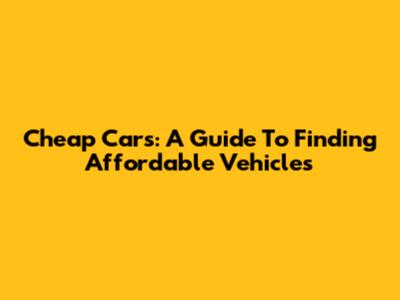 Cheap Cars: A Guide To Finding Affordable Vehicles