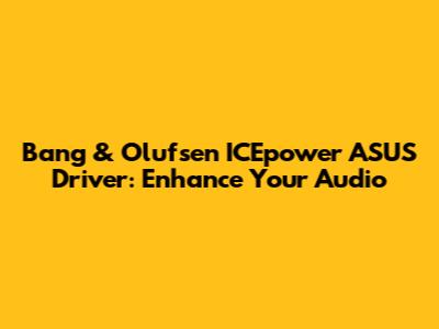 Bang & Olufsen ICEpower ASUS Driver: Enhance Your Audio