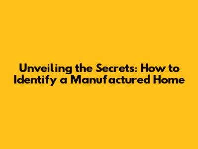 Unveiling The Secrets: How To Identify A Manufactured Home