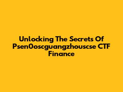 Unlocking The Secrets Of Psen0oscguangzhouscse CTF Finance