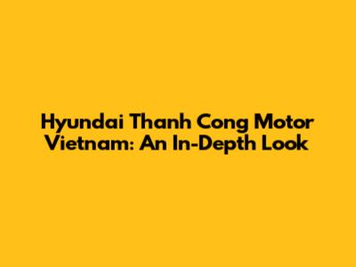 Hyundai Thanh Cong Motor Vietnam: An In-Depth Look