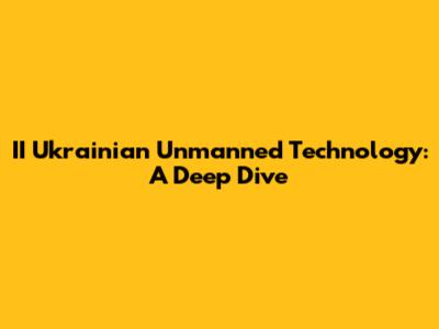 II Ukrainian Unmanned Technology: A Deep Dive