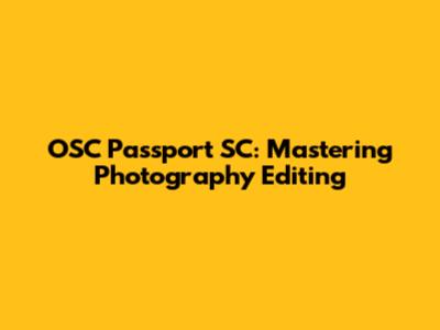 OSC Passport SC: Mastering Photography Editing