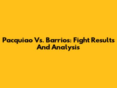 Pacquiao Vs. Barrios: Fight Results And Analysis