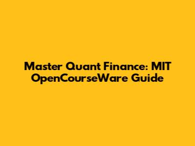 Master Quant Finance: MIT OpenCourseWare Guide