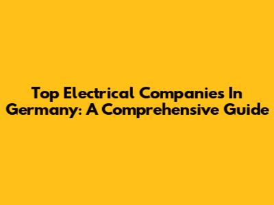 Top Electrical Companies In Germany: A Comprehensive Guide