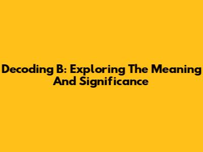 Decoding 'B': Exploring The Meaning And Significance