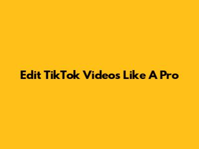 Edit TikTok Videos Like A Pro